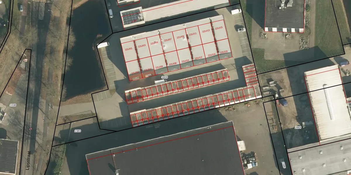 Het perceel waarop Lipsstraat 22-U-26 staat heeft een oppervlakte van 4865 m². Dit is een zeer groot perceel. De perceeloppervlakte wordt geregistreerd door het Kadaster. Gedetailleerde informatie over de maten van dit perceel kunt u vinden in het rapport Kadastrale kaart met maatvoering van Lipsstraat 22-U-26.