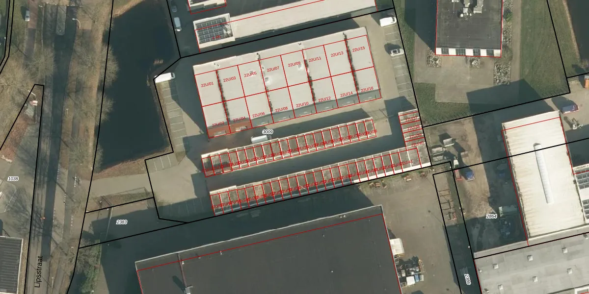 Het perceel waarop Lipsstraat 22-U-27 staat heeft een oppervlakte van 4865 m². Dit is een zeer groot perceel. De perceeloppervlakte wordt geregistreerd door het Kadaster. Gedetailleerde informatie over de maten van dit perceel kunt u vinden in het rapport Kadastrale kaart met maatvoering van Lipsstraat 22-U-27.