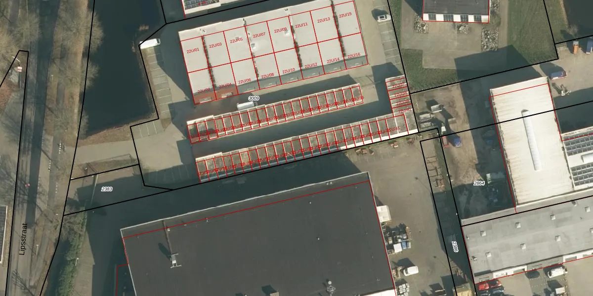 Het perceel waarop Lipsstraat 22-U-52 staat heeft een oppervlakte van 4865 m². Dit is een zeer groot perceel. De perceeloppervlakte wordt geregistreerd door het Kadaster. Gedetailleerde informatie over de maten van dit perceel kunt u vinden in het rapport Kadastrale kaart met maatvoering van Lipsstraat 22-U-52.