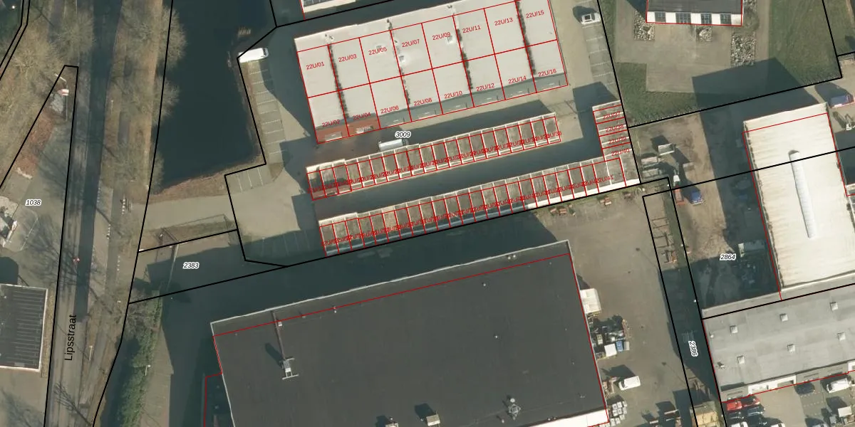 Het perceel waarop Lipsstraat 22-U-55 staat heeft een oppervlakte van 4865 m². Dit is een zeer groot perceel. De perceeloppervlakte wordt geregistreerd door het Kadaster. Gedetailleerde informatie over de maten van dit perceel kunt u vinden in het rapport Kadastrale kaart met maatvoering van Lipsstraat 22-U-55.