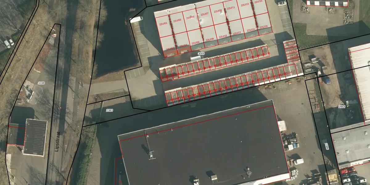 Het perceel waarop Lipsstraat 22-U-60 staat heeft een oppervlakte van 4865 m². Dit is een zeer groot perceel. De perceeloppervlakte wordt geregistreerd door het Kadaster. Gedetailleerde informatie over de maten van dit perceel kunt u vinden in het rapport Kadastrale kaart met maatvoering van Lipsstraat 22-U-60.