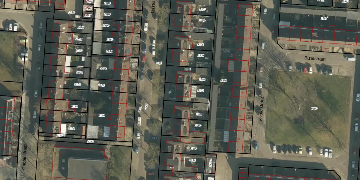 Het perceel waarop Lisztstraat 15 staat heeft een oppervlakte van 245 m². Dit is een middelgroot perceel. De perceeloppervlakte wordt geregistreerd door het Kadaster. Gedetailleerde informatie over de maten van dit perceel kunt u vinden in het rapport Kadastrale kaart met maatvoering van Lisztstraat 15.