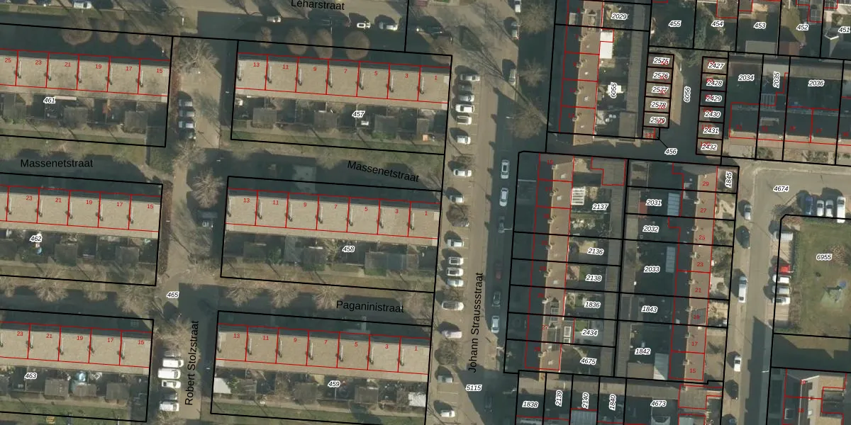 Massenetstraat 1 is gelegen op kadastraal perceel DNN00L458. Deze kadastrale aanduiding is uniek en wordt gebruikt door het Kadaster om eigendomsrechten en andere zakelijke rechten vast te leggen. Het perceel maakt onderdeel uit van de kadastrale gemeente Drunen.