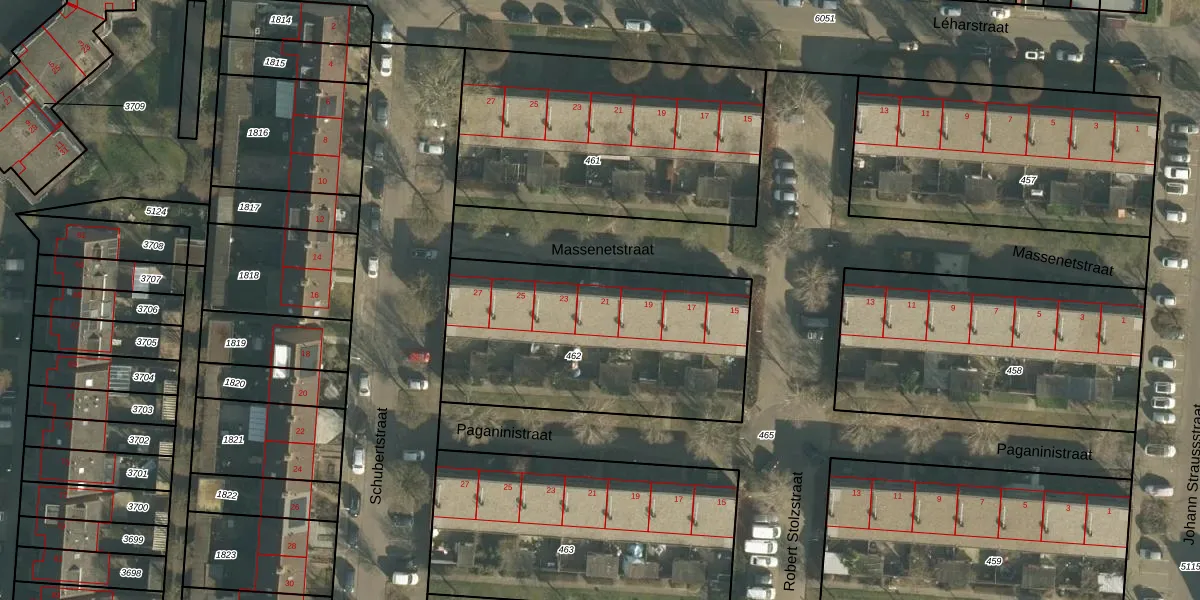 Massenetstraat 21 is gelegen op kadastraal perceel DNN00L462. Deze kadastrale aanduiding is uniek en wordt gebruikt door het Kadaster om eigendomsrechten en andere zakelijke rechten vast te leggen. Het perceel maakt onderdeel uit van de kadastrale gemeente Drunen.