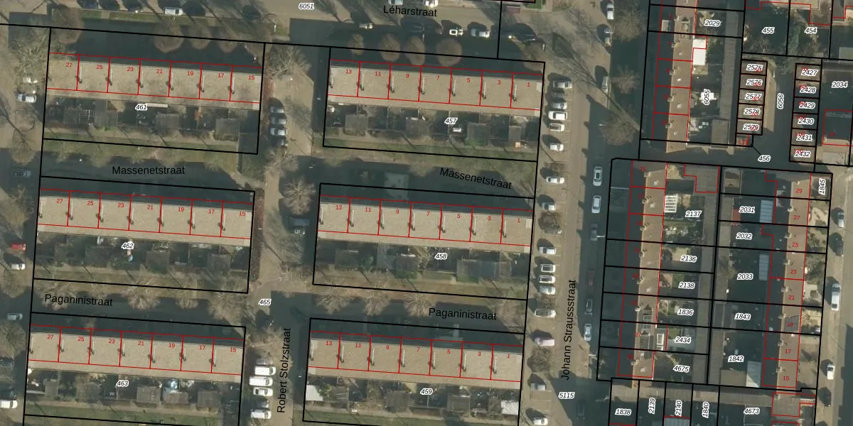 Massenetstraat 7 is gelegen op kadastraal perceel DNN00L458. Deze kadastrale aanduiding is uniek en wordt gebruikt door het Kadaster om eigendomsrechten en andere zakelijke rechten vast te leggen. Het perceel maakt onderdeel uit van de kadastrale gemeente Drunen.