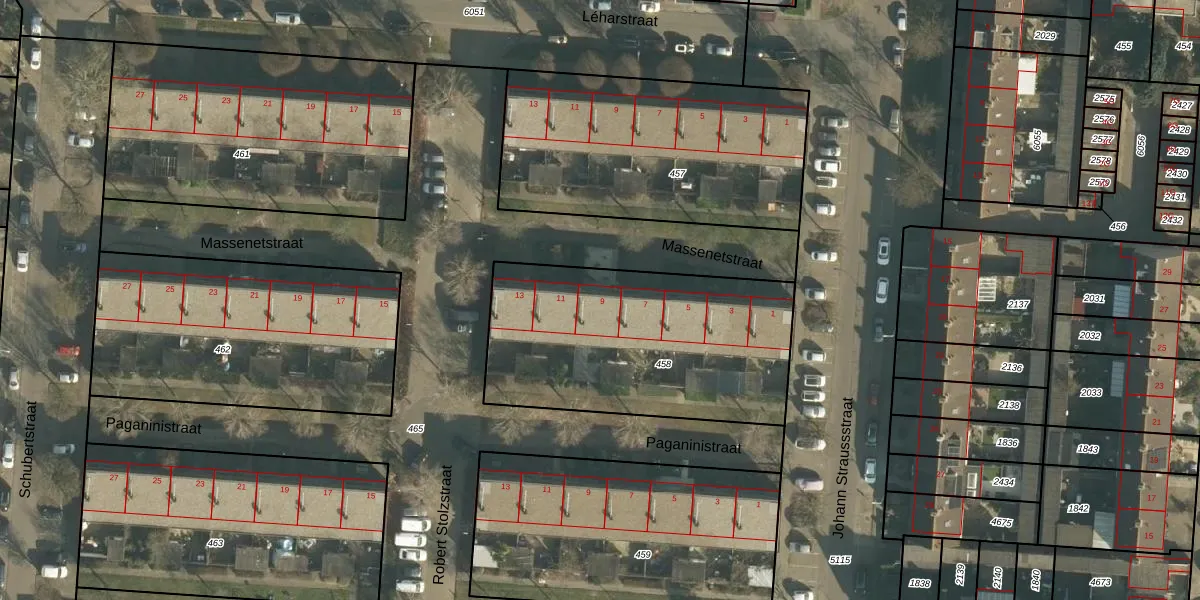 Massenetstraat 9 is gelegen op kadastraal perceel DNN00L458. Deze kadastrale aanduiding is uniek en wordt gebruikt door het Kadaster om eigendomsrechten en andere zakelijke rechten vast te leggen. Het perceel maakt onderdeel uit van de kadastrale gemeente Drunen.