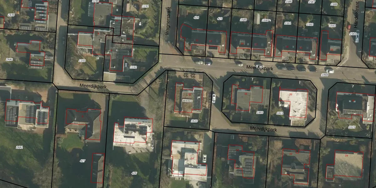 Gebruik de zoekbalk of klik op een perceel voor informatie over de adressen binnen dit perceel.