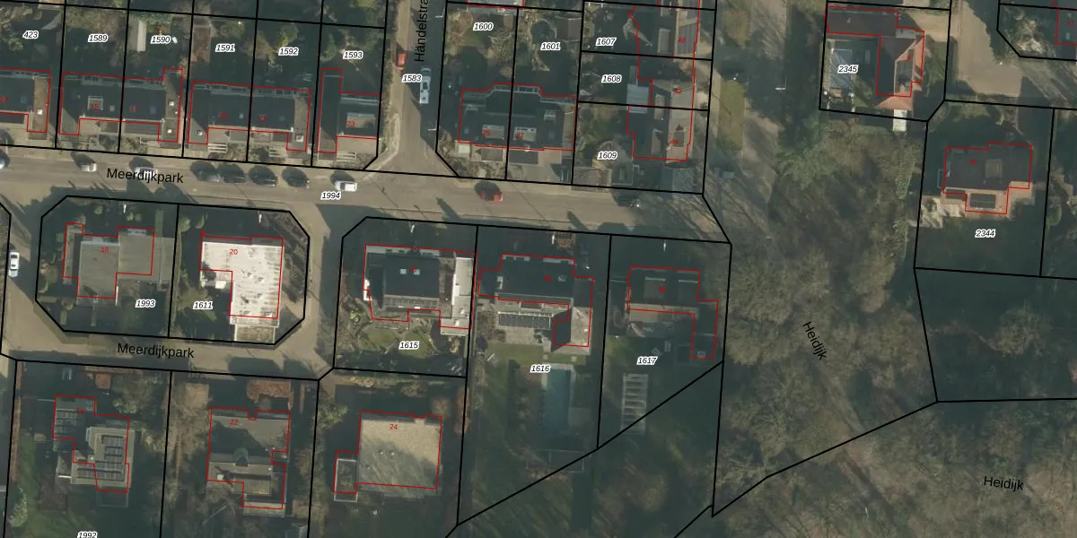 Het perceel waarop Meerdijkpark 28 staat heeft een oppervlakte van 1203 m². Dit is een zeer groot perceel. De perceeloppervlakte wordt geregistreerd door het Kadaster. Gedetailleerde informatie over de maten van dit perceel kunt u vinden in het rapport Kadastrale kaart met maatvoering van Meerdijkpark 28.