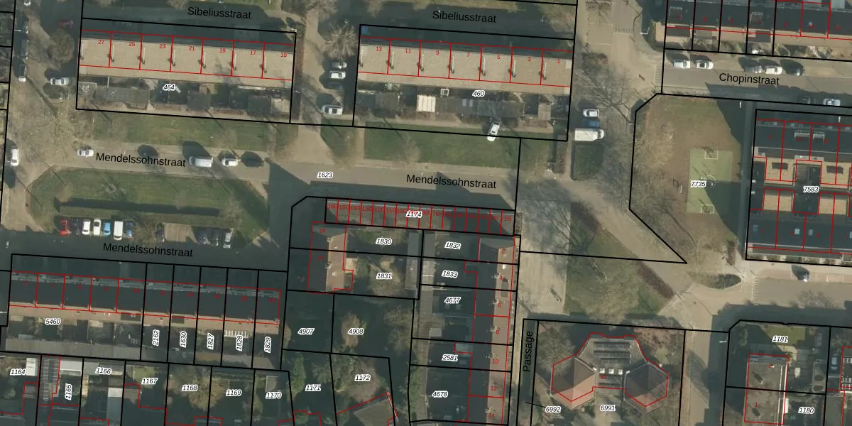 Mendelssohnstraat 8-G is gelegen op kadastraal perceel DNN00L1174. Deze kadastrale aanduiding is uniek en wordt gebruikt door het Kadaster om eigendomsrechten en andere zakelijke rechten vast te leggen. Het perceel maakt onderdeel uit van de kadastrale gemeente Drunen.