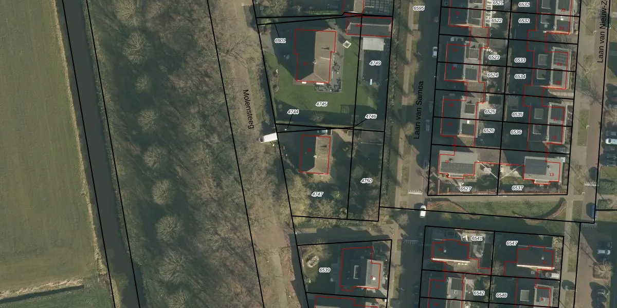 Het perceel waarop Molensteeg 26 staat heeft een oppervlakte van 595 m². Dit is een groot perceel. De perceeloppervlakte wordt geregistreerd door het Kadaster. Gedetailleerde informatie over de maten van dit perceel kunt u vinden in het rapport Kadastrale kaart met maatvoering van Molensteeg 26.