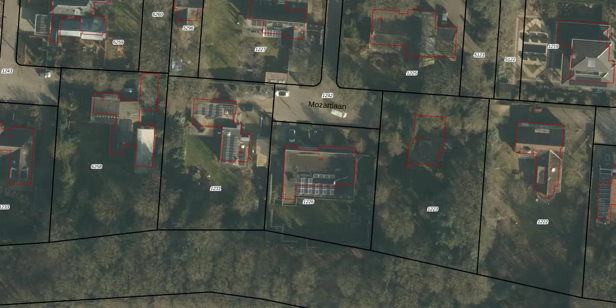Mozartlaan 44 is gelegen op kadastraal perceel DNN00L1226. Deze kadastrale aanduiding is uniek en wordt gebruikt door het Kadaster om eigendomsrechten en andere zakelijke rechten vast te leggen. Het perceel maakt onderdeel uit van de kadastrale gemeente Drunen.