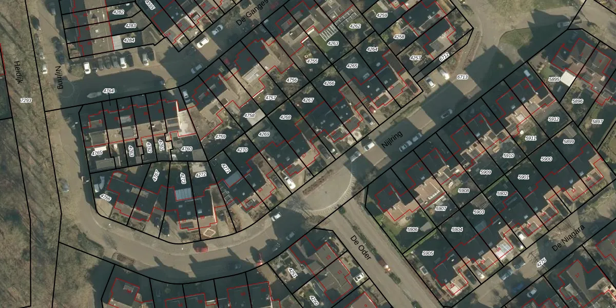 Gebruik de zoekbalk of klik op een perceel voor informatie over de adressen binnen dit perceel.