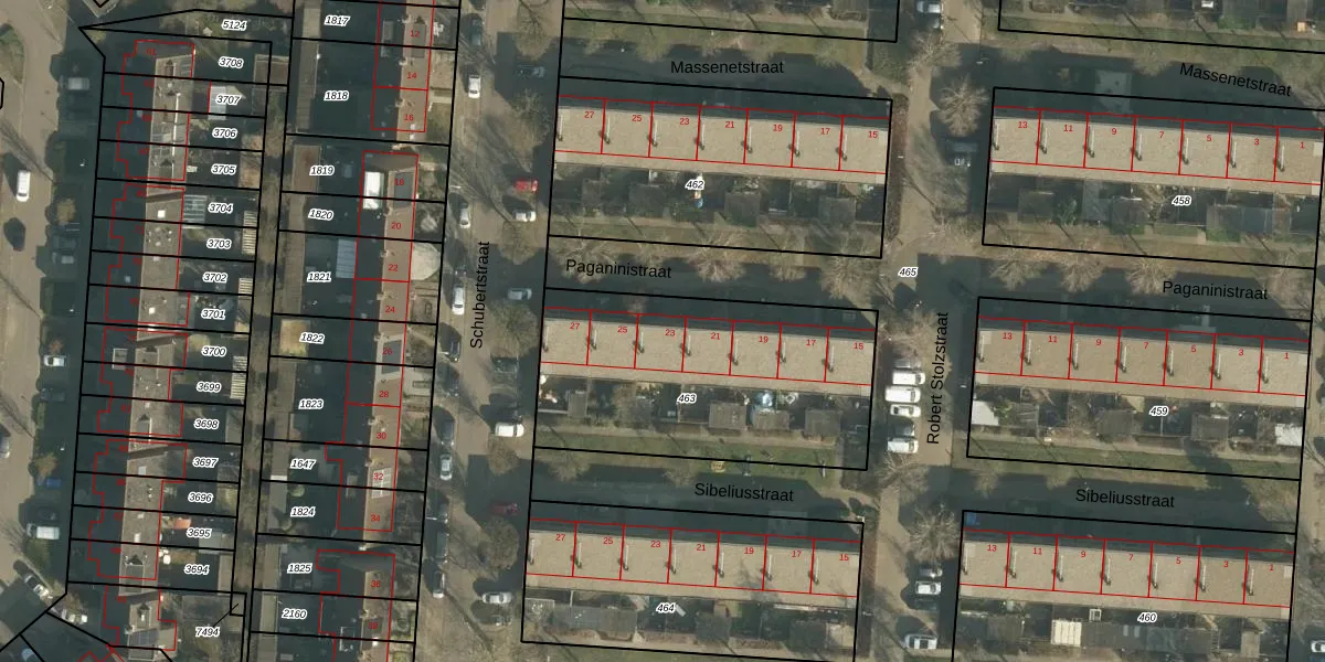 Het perceel waarop Paganinistraat 23 staat heeft een oppervlakte van 1209 m². Dit is een zeer groot perceel. De perceeloppervlakte wordt geregistreerd door het Kadaster. Gedetailleerde informatie over de maten van dit perceel kunt u vinden in het rapport Kadastrale kaart met maatvoering van Paganinistraat 23.