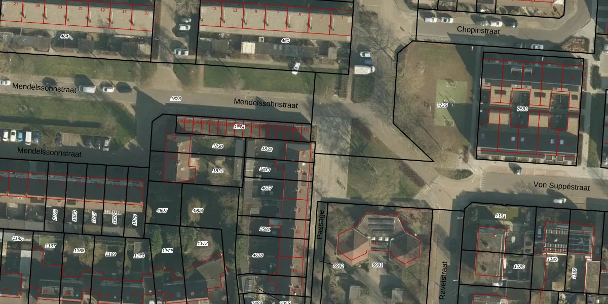 Het perceel waarop Passage 2 staat heeft een oppervlakte van 150 m². Dit is een middelgroot perceel. De perceeloppervlakte wordt geregistreerd door het Kadaster. Gedetailleerde informatie over de maten van dit perceel kunt u vinden in het rapport Kadastrale kaart met maatvoering van Passage 2.