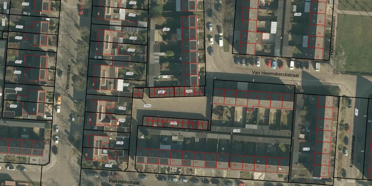 Het perceel waarop Piet Heinstraat 8-G staat heeft een oppervlakte van 90 m². Dit is een klein perceel. De perceeloppervlakte wordt geregistreerd door het Kadaster. Gedetailleerde informatie over de maten van dit perceel kunt u vinden in het rapport Kadastrale kaart met maatvoering van Piet Heinstraat 8-G.