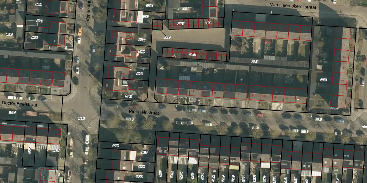 Het perceel waarop Piet Heinstraat 9 staat heeft een oppervlakte van 3255 m². Dit is een zeer groot perceel. De perceeloppervlakte wordt geregistreerd door het Kadaster. Gedetailleerde informatie over de maten van dit perceel kunt u vinden in het rapport Kadastrale kaart met maatvoering van Piet Heinstraat 9.