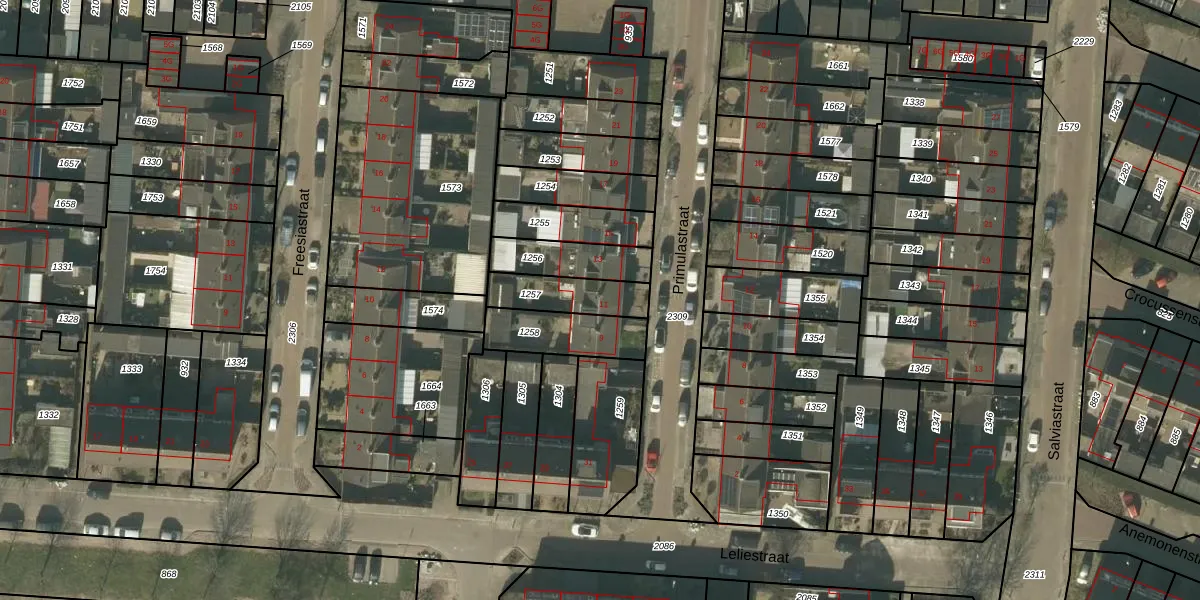 Gebruik de zoekbalk of klik op een perceel voor informatie over de adressen binnen dit perceel.