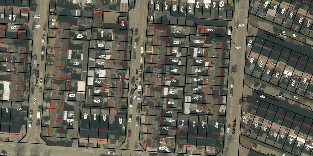 Het perceel waarop Primulastraat 14 staat heeft een oppervlakte van 202 m². Dit is een middelgroot perceel. De perceeloppervlakte wordt geregistreerd door het Kadaster. Gedetailleerde informatie over de maten van dit perceel kunt u vinden in het rapport Kadastrale kaart met maatvoering van Primulastraat 14.