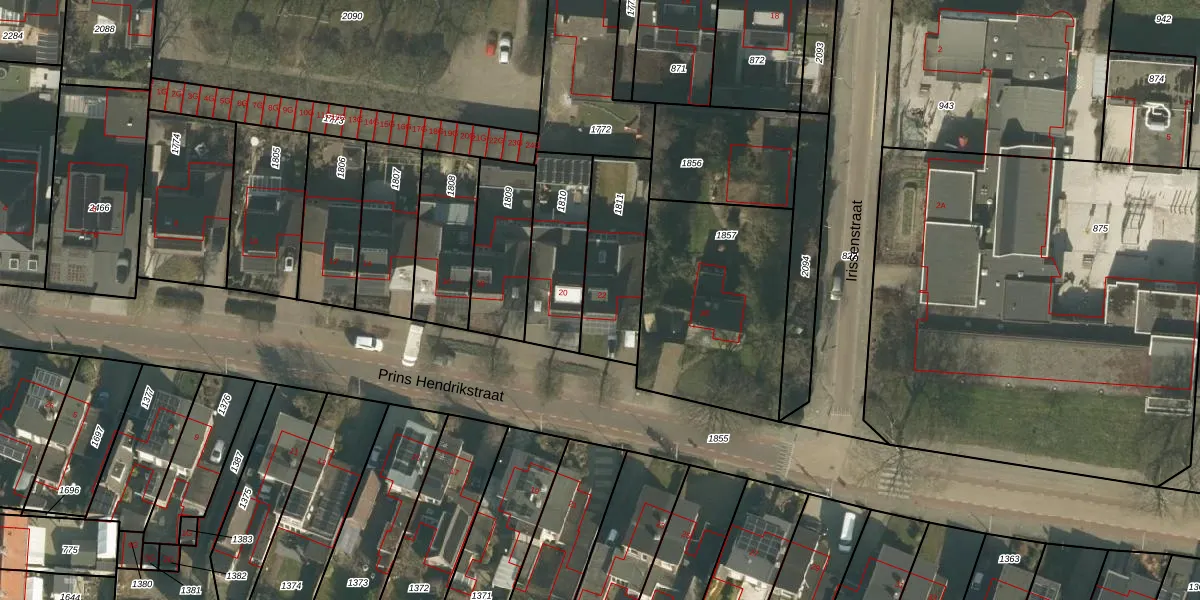 Het perceel waarop Prins Hendrikstraat 22 staat heeft een oppervlakte van 330 m². Dit is een groot perceel. De perceeloppervlakte wordt geregistreerd door het Kadaster. Gedetailleerde informatie over de maten van dit perceel kunt u vinden in het rapport Kadastrale kaart met maatvoering van Prins Hendrikstraat 22.