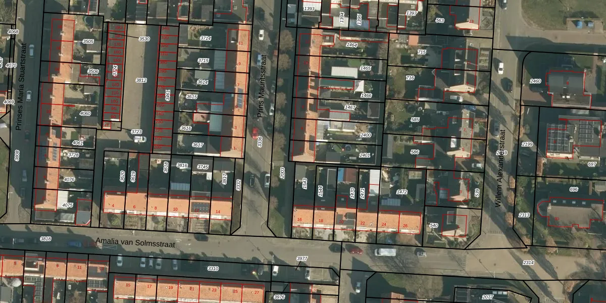 Het perceel waarop Prins Mauritsstraat 2 staat heeft een oppervlakte van 216 m². Dit is een middelgroot perceel. De perceeloppervlakte wordt geregistreerd door het Kadaster. Gedetailleerde informatie over de maten van dit perceel kunt u vinden in het rapport Kadastrale kaart met maatvoering van Prins Mauritsstraat 2.