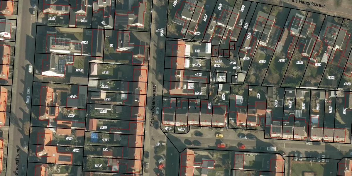 Gebruik de zoekbalk of klik op een perceel voor informatie over de adressen binnen dit perceel.