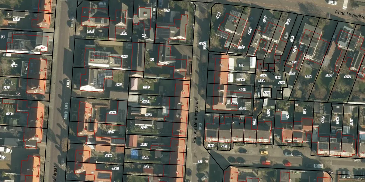 Prinses Beatrixstraat 25 is gelegen op kadastraal perceel DNN00H1593. Deze kadastrale aanduiding is uniek en wordt gebruikt door het Kadaster om eigendomsrechten en andere zakelijke rechten vast te leggen. Het perceel maakt onderdeel uit van de kadastrale gemeente Drunen.