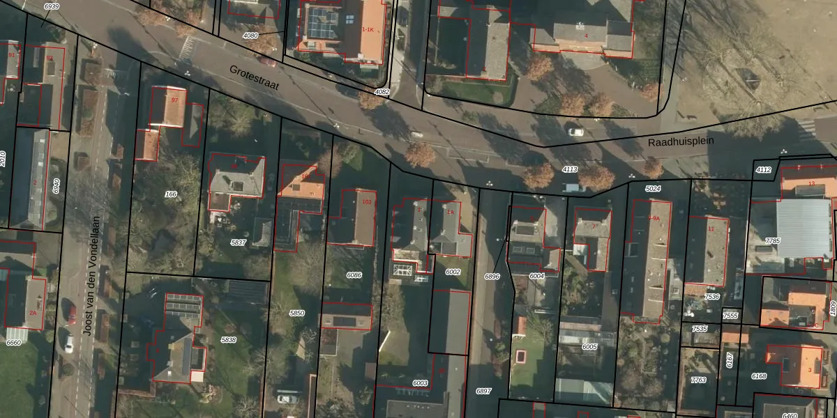 Raadhuisplein 1 is gelegen op kadastraal perceel DNN00L6003. Deze kadastrale aanduiding is uniek en wordt gebruikt door het Kadaster om eigendomsrechten en andere zakelijke rechten vast te leggen. Het perceel maakt onderdeel uit van de kadastrale gemeente Drunen.