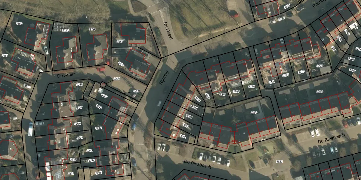 Gebruik de zoekbalk of klik op een perceel voor informatie over de adressen binnen dit perceel.