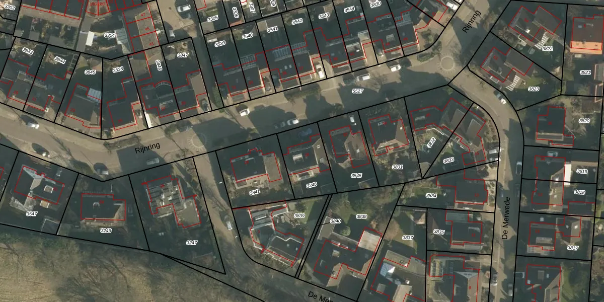 Het perceel waarop Rijnring 30 staat heeft een oppervlakte van 330 m². Dit is een groot perceel. De perceeloppervlakte wordt geregistreerd door het Kadaster. Gedetailleerde informatie over de maten van dit perceel kunt u vinden in het rapport Kadastrale kaart met maatvoering van Rijnring 30.