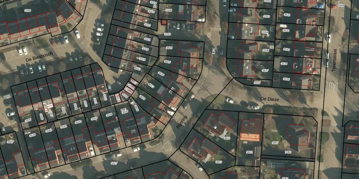 Rijnring 55 is gelegen op kadastraal perceel DNN00L3826. Deze kadastrale aanduiding is uniek en wordt gebruikt door het Kadaster om eigendomsrechten en andere zakelijke rechten vast te leggen. Het perceel maakt onderdeel uit van de kadastrale gemeente Drunen.