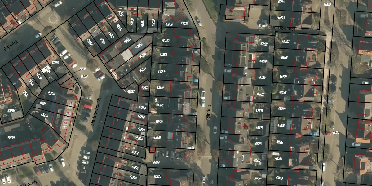 Rijnring 71 is gelegen op kadastraal perceel DNN00L3497. Deze kadastrale aanduiding is uniek en wordt gebruikt door het Kadaster om eigendomsrechten en andere zakelijke rechten vast te leggen. Het perceel maakt onderdeel uit van de kadastrale gemeente Drunen.