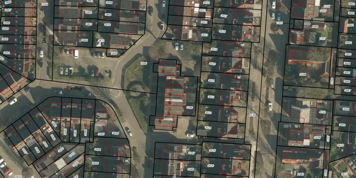 Rijnring 92 is gelegen op kadastraal perceel DNN00L3346. Deze kadastrale aanduiding is uniek en wordt gebruikt door het Kadaster om eigendomsrechten en andere zakelijke rechten vast te leggen. Het perceel maakt onderdeel uit van de kadastrale gemeente Drunen.