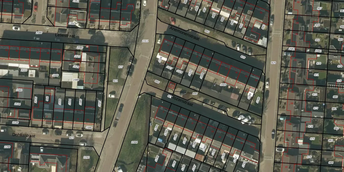 Gebruik de zoekbalk of klik op een perceel voor informatie over de adressen binnen dit perceel.
