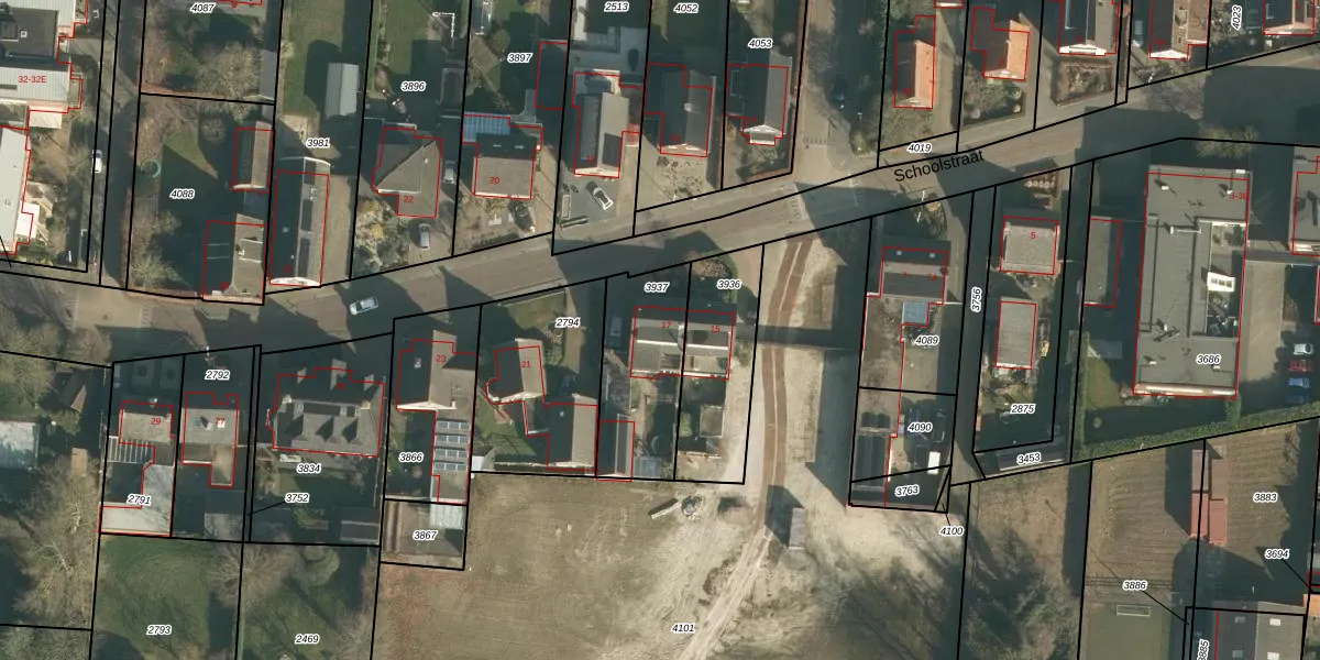 Het perceel waarop Schoolstraat 17 staat heeft een oppervlakte van 385 m². Dit is een groot perceel. De perceeloppervlakte wordt geregistreerd door het Kadaster. Gedetailleerde informatie over de maten van dit perceel kunt u vinden in het rapport Kadastrale kaart met maatvoering van Schoolstraat 17.
