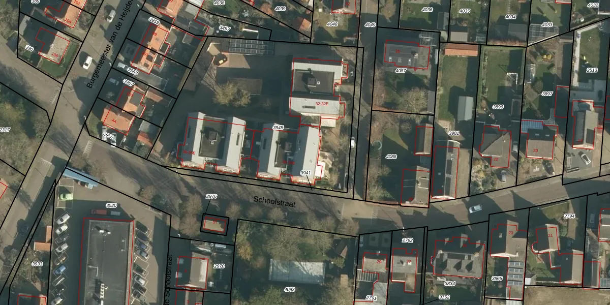 Het perceel waarop Schoolstraat 34-E staat heeft een oppervlakte van 2630 m². Dit is een zeer groot perceel. De perceeloppervlakte wordt geregistreerd door het Kadaster. Gedetailleerde informatie over de maten van dit perceel kunt u vinden in het rapport Kadastrale kaart met maatvoering van Schoolstraat 34-E.
