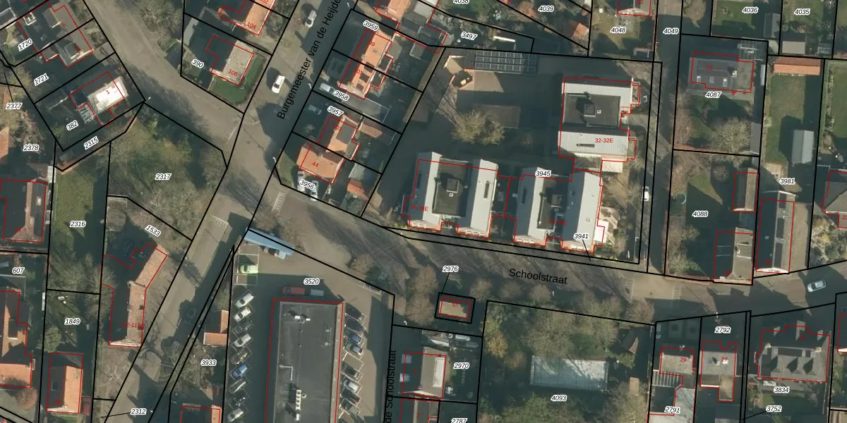Het perceel waarop Schoolstraat 36 staat heeft een oppervlakte van 2630 m². Dit is een zeer groot perceel. De perceeloppervlakte wordt geregistreerd door het Kadaster. Gedetailleerde informatie over de maten van dit perceel kunt u vinden in het rapport Kadastrale kaart met maatvoering van Schoolstraat 36.
