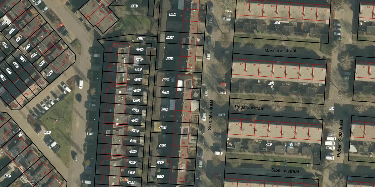 Het perceel waarop Schubertstraat 20 staat heeft een oppervlakte van 157 m². Dit is een middelgroot perceel. De perceeloppervlakte wordt geregistreerd door het Kadaster. Gedetailleerde informatie over de maten van dit perceel kunt u vinden in het rapport Kadastrale kaart met maatvoering van Schubertstraat 20.