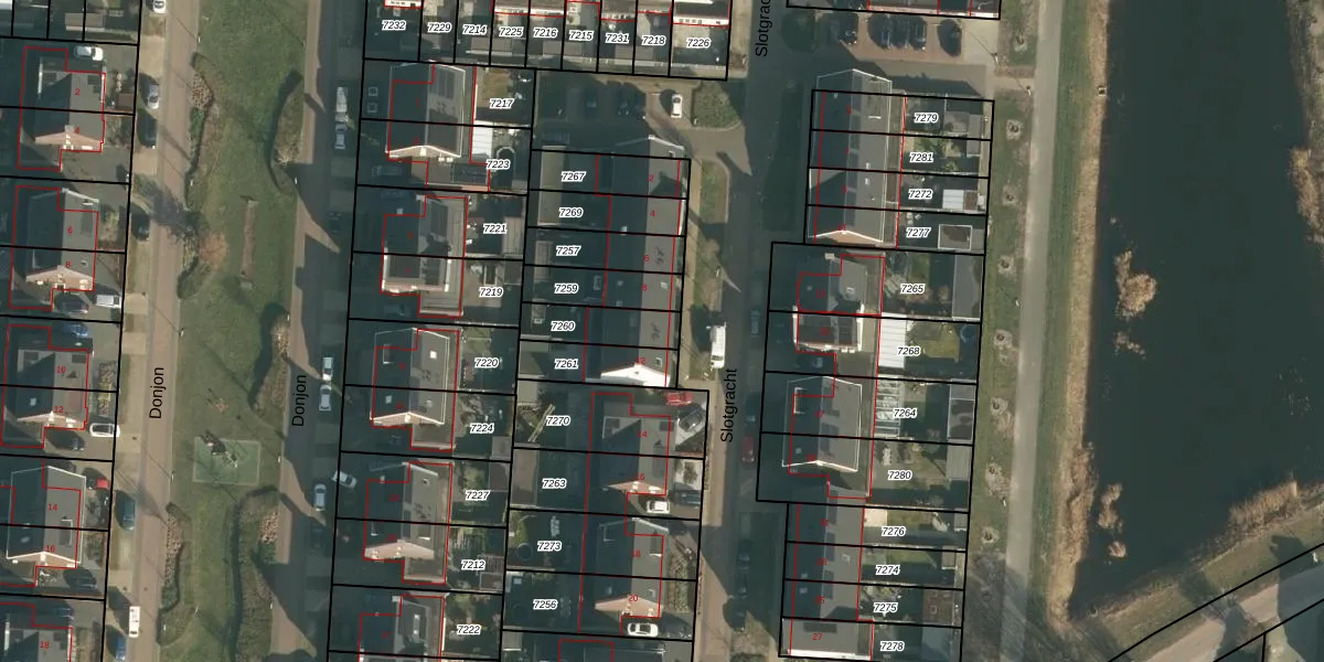 Slotgracht 10 is gelegen op kadastraal perceel DNN00L7260. Deze kadastrale aanduiding is uniek en wordt gebruikt door het Kadaster om eigendomsrechten en andere zakelijke rechten vast te leggen. Het perceel maakt onderdeel uit van de kadastrale gemeente Drunen.