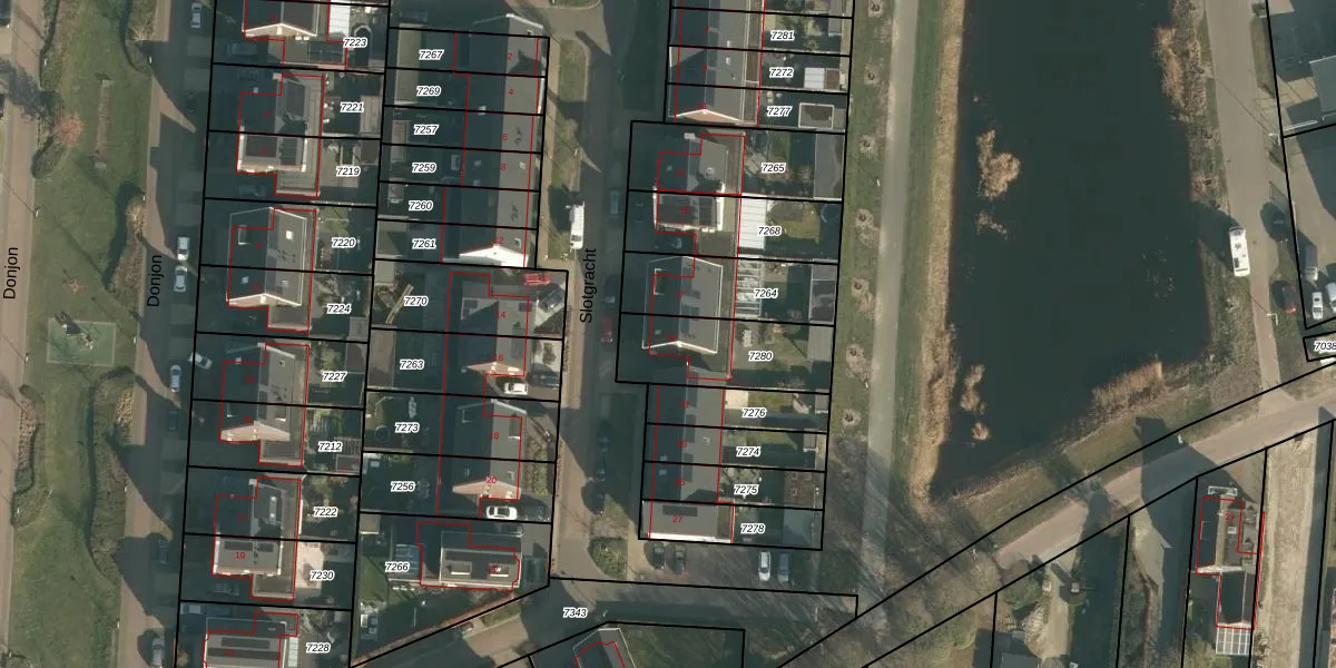 Slotgracht 19 is gelegen op kadastraal perceel DNN00L7280. Deze kadastrale aanduiding is uniek en wordt gebruikt door het Kadaster om eigendomsrechten en andere zakelijke rechten vast te leggen. Het perceel maakt onderdeel uit van de kadastrale gemeente Drunen.