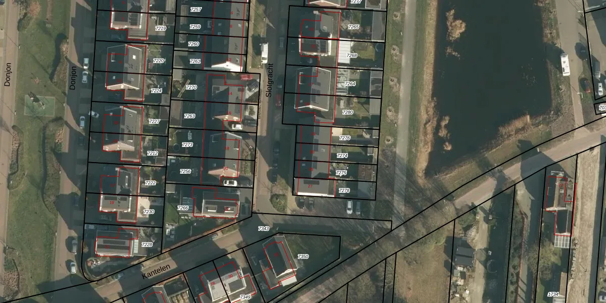 Slotgracht 23 is gelegen op kadastraal perceel DNN00L7274. Deze kadastrale aanduiding is uniek en wordt gebruikt door het Kadaster om eigendomsrechten en andere zakelijke rechten vast te leggen. Het perceel maakt onderdeel uit van de kadastrale gemeente Drunen.