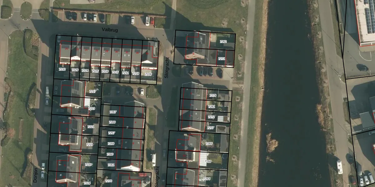 Slotgracht 5 is gelegen op kadastraal perceel DNN00L7279. Deze kadastrale aanduiding is uniek en wordt gebruikt door het Kadaster om eigendomsrechten en andere zakelijke rechten vast te leggen. Het perceel maakt onderdeel uit van de kadastrale gemeente Drunen.