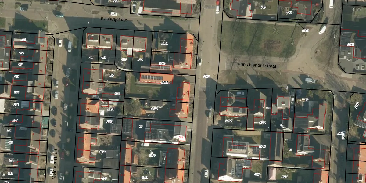 Gebruik de zoekbalk of klik op een perceel voor informatie over de adressen binnen dit perceel.