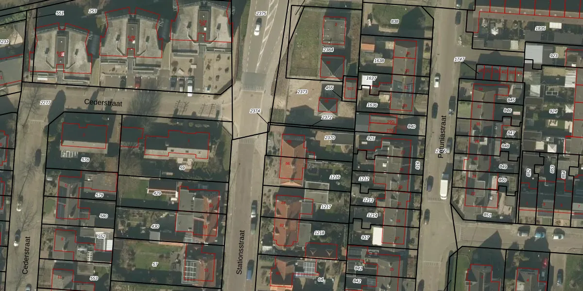 Het perceel waarop Stationsstraat 88 staat heeft een oppervlakte van 314 m². Dit is een groot perceel. De perceeloppervlakte wordt geregistreerd door het Kadaster. Gedetailleerde informatie over de maten van dit perceel kunt u vinden in het rapport Kadastrale kaart met maatvoering van Stationsstraat 88.