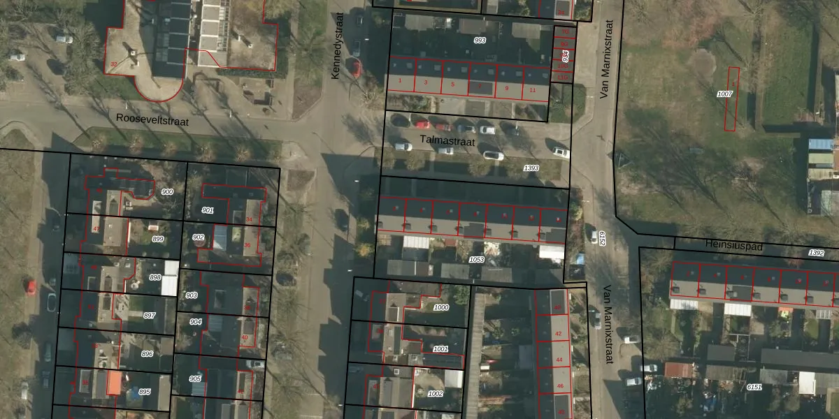 Talmastraat 4 is gelegen op kadastraal perceel DNN00L1053. Deze kadastrale aanduiding is uniek en wordt gebruikt door het Kadaster om eigendomsrechten en andere zakelijke rechten vast te leggen. Het perceel maakt onderdeel uit van de kadastrale gemeente Drunen.