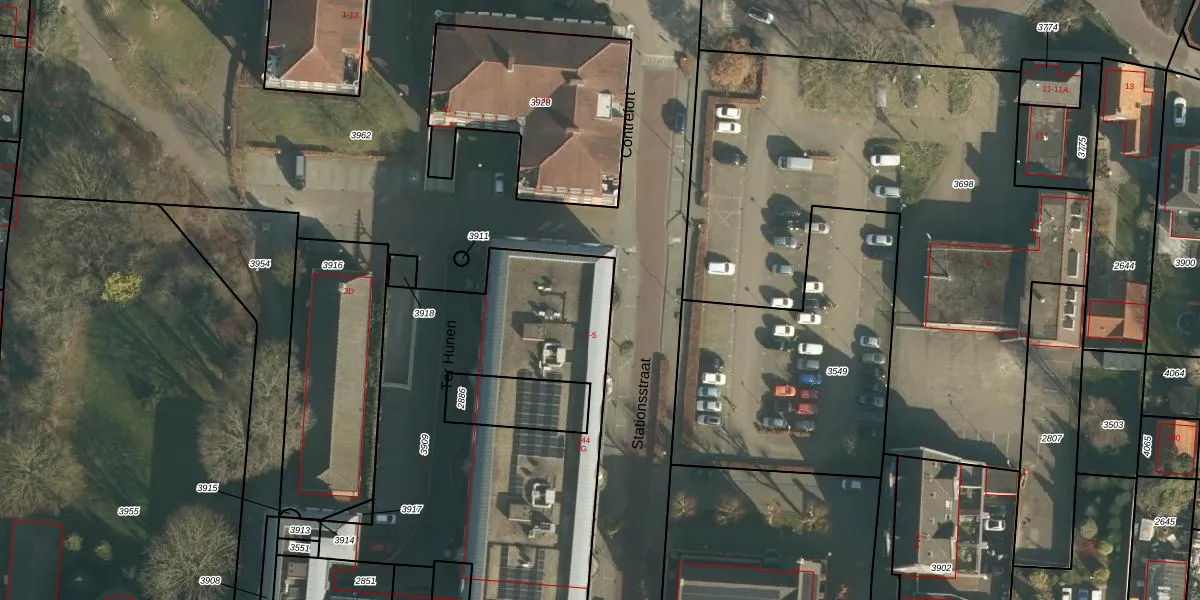 Het perceel waarop Ter Hunen 24 staat heeft een oppervlakte van 1881 m². Dit is een zeer groot perceel. De perceeloppervlakte wordt geregistreerd door het Kadaster. Gedetailleerde informatie over de maten van dit perceel kunt u vinden in het rapport Kadastrale kaart met maatvoering van Ter Hunen 24.