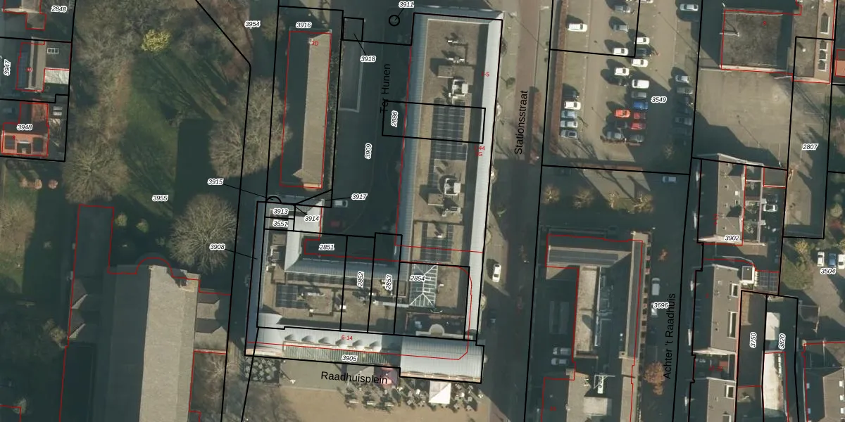 Het perceel waarop Ter Hunen 36 staat heeft een oppervlakte van 1881 m². Dit is een zeer groot perceel. De perceeloppervlakte wordt geregistreerd door het Kadaster. Gedetailleerde informatie over de maten van dit perceel kunt u vinden in het rapport Kadastrale kaart met maatvoering van Ter Hunen 36.