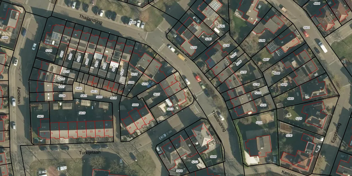 Het perceel waarop Thailandring 26 staat heeft een oppervlakte van 263 m². Dit is een middelgroot perceel. De perceeloppervlakte wordt geregistreerd door het Kadaster. Gedetailleerde informatie over de maten van dit perceel kunt u vinden in het rapport Kadastrale kaart met maatvoering van Thailandring 26.