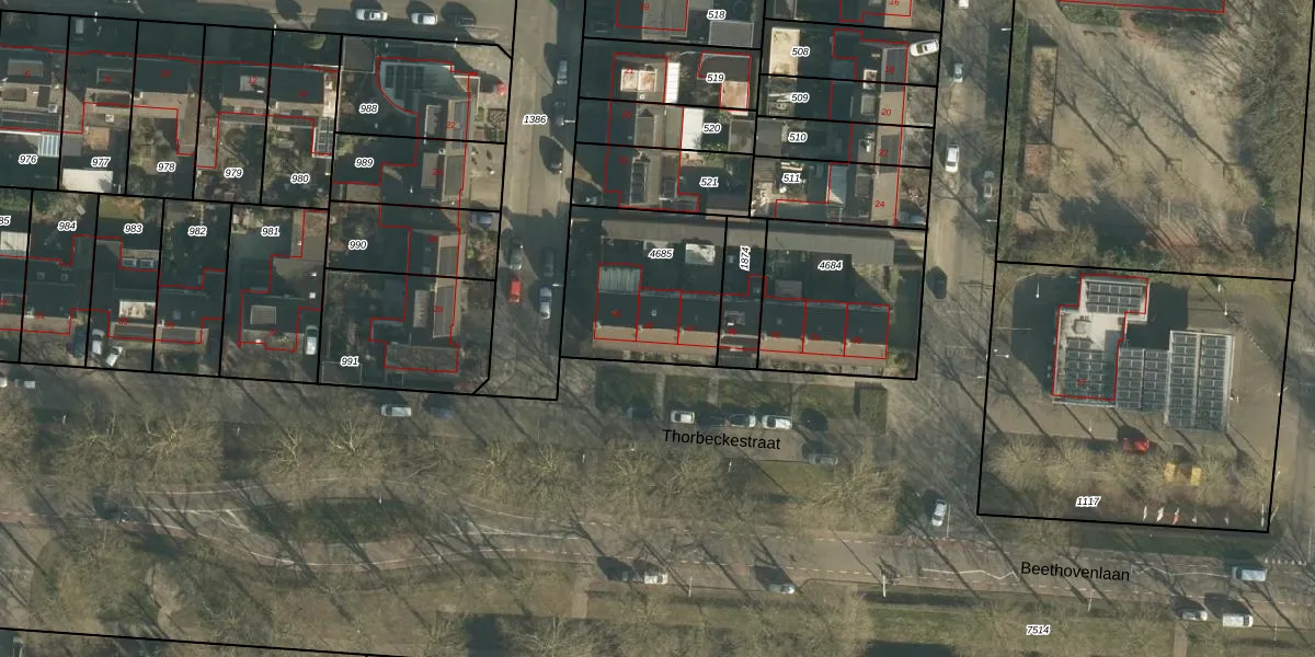 Het perceel waarop Thorbeckestraat 45 staat heeft een oppervlakte van 552 m². Dit is een groot perceel. De perceeloppervlakte wordt geregistreerd door het Kadaster. Gedetailleerde informatie over de maten van dit perceel kunt u vinden in het rapport Kadastrale kaart met maatvoering van Thorbeckestraat 45.