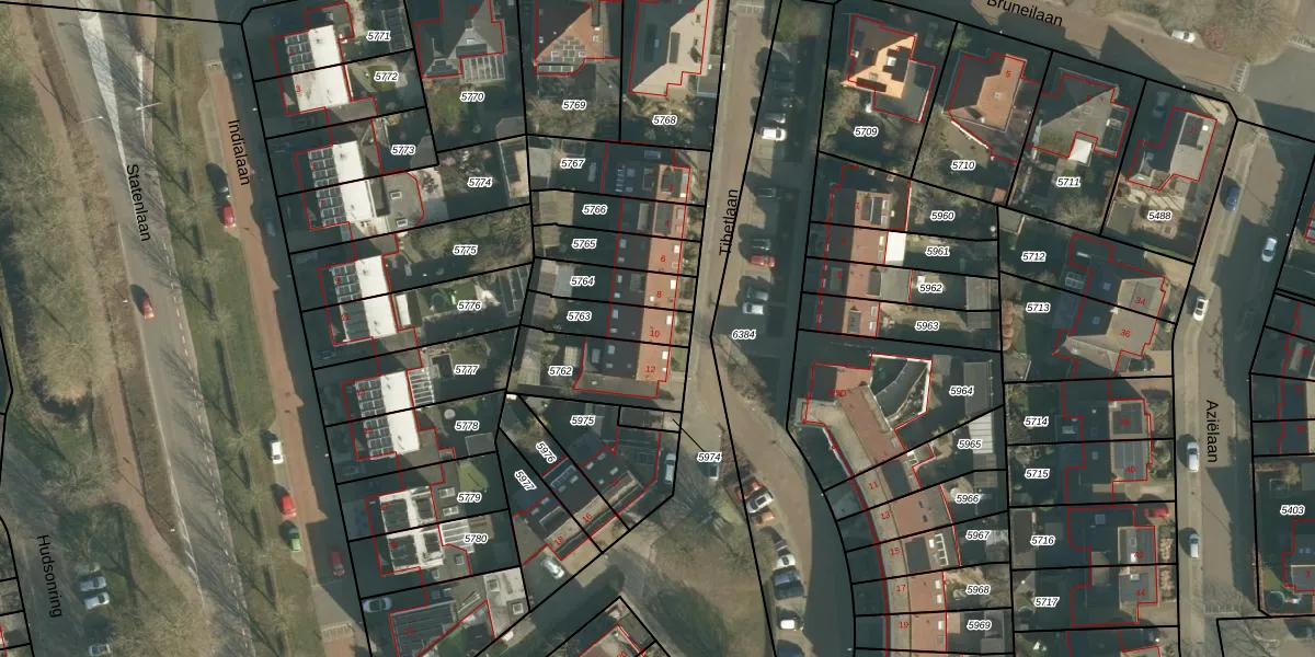 Gebruik de zoekbalk of klik op een perceel voor informatie over de adressen binnen dit perceel.