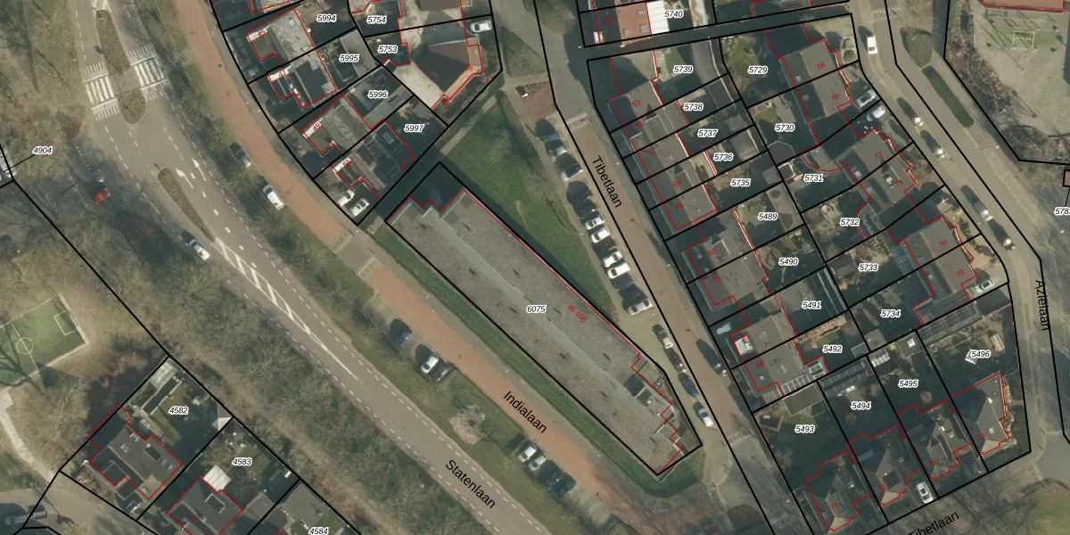 Tibetlaan 54 is gelegen op kadastraal perceel DNN00L6075. Deze kadastrale aanduiding is uniek en wordt gebruikt door het Kadaster om eigendomsrechten en andere zakelijke rechten vast te leggen. Het perceel maakt onderdeel uit van de kadastrale gemeente Drunen.